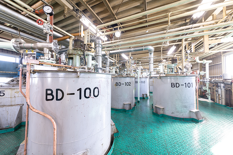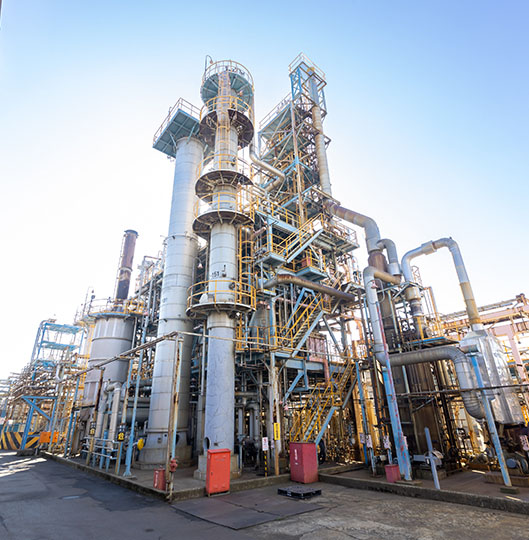 三共油化工業では、世界最高水準のプラントと独自技術を備えた製造装置により、製品の高品質と安全性を追求しています。